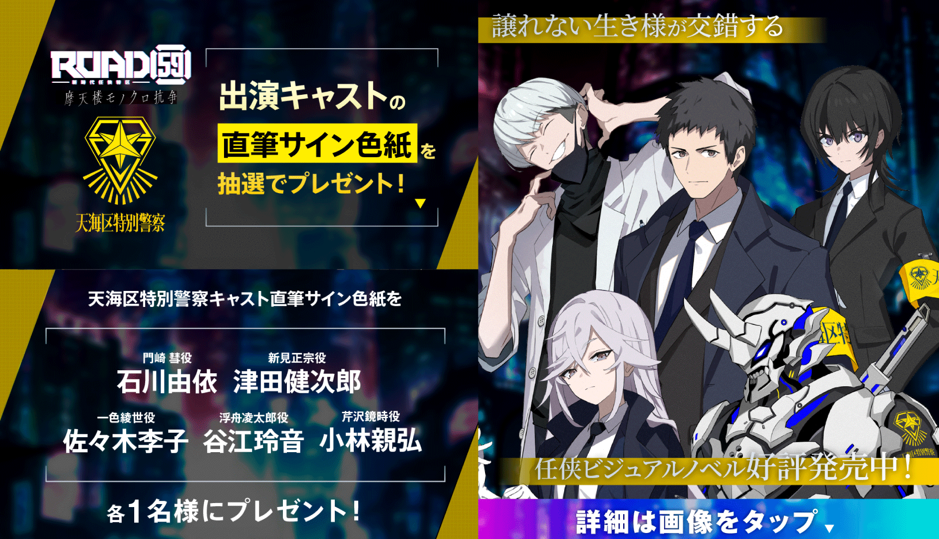 天海区特別警察キャストのサイン色紙が抽選で当たる「ROAD59 -新時代任侠特区- 摩天楼モノクロ抗争」発売記念キャンペーン開催